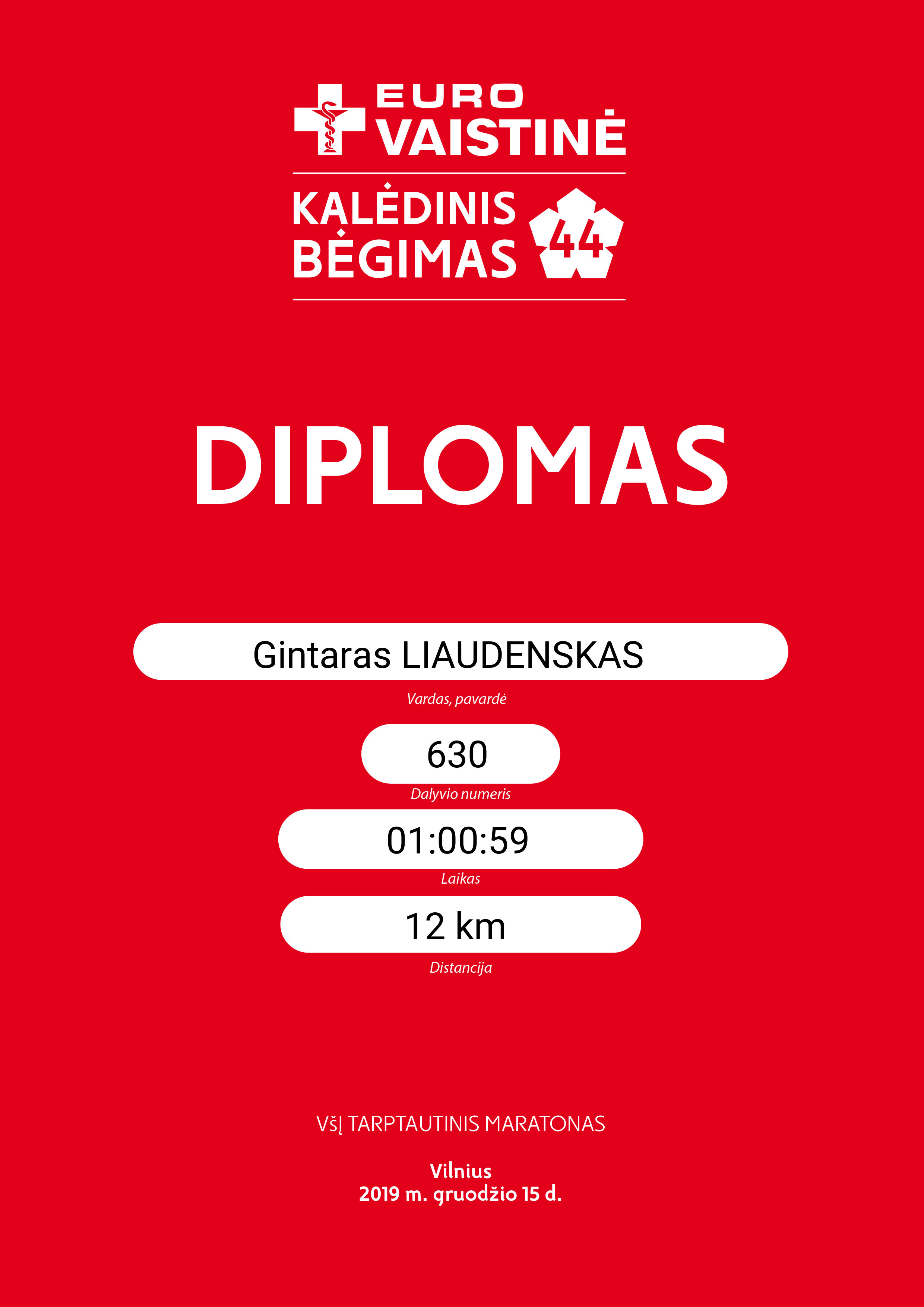 | 177 | Gintaras LIAUDENSKAS | Eurovaistinė | 630 | Lithuania | 12 km | 01:00:59 | Diplomas |