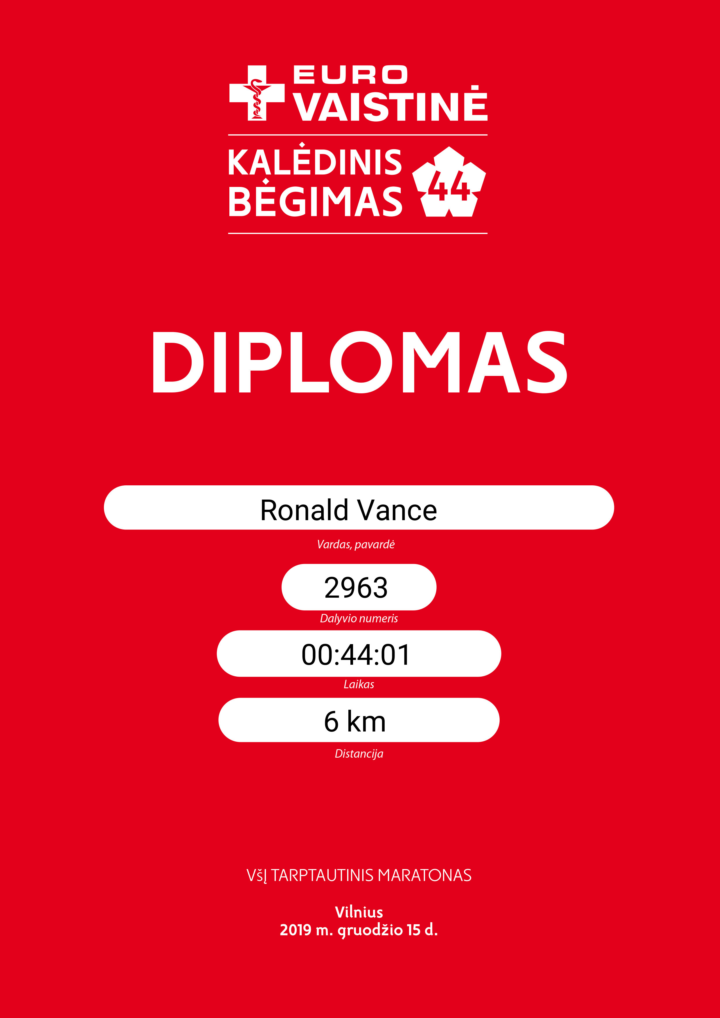 | 886 | Ronald Vance | 2963 | Lithuania | 6 km | 00:44:01 | Diplomas | |