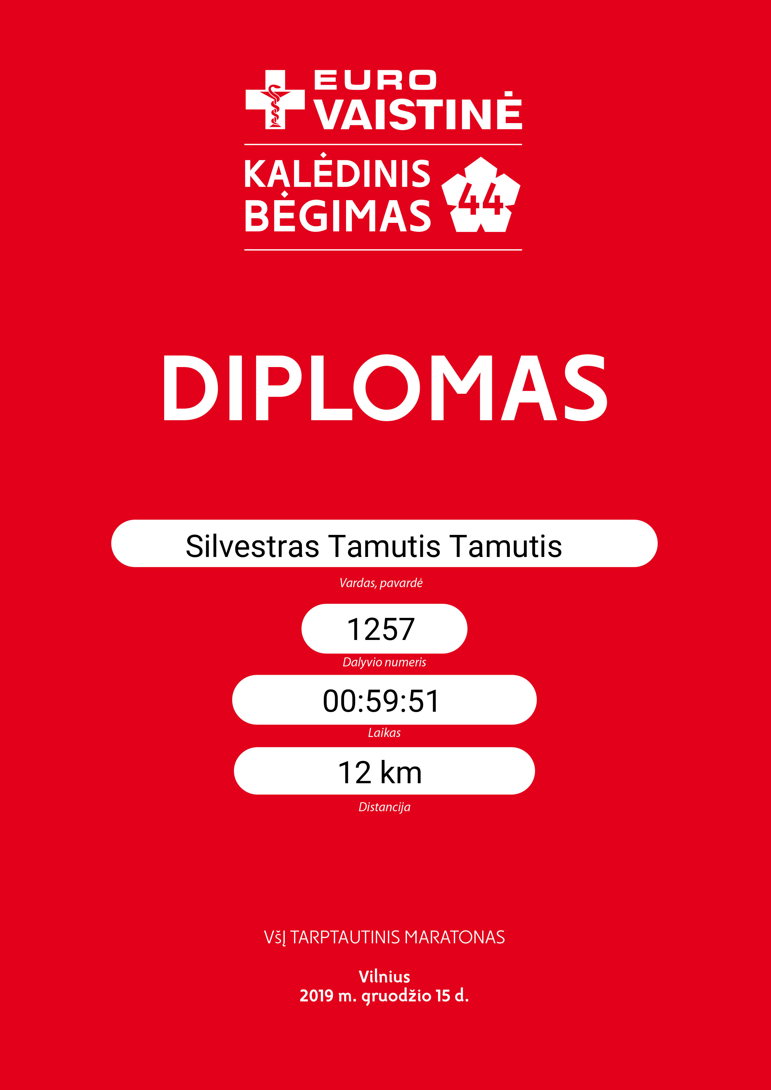 | 151 | Silvestras Tamutis Tamutis | 1257 | Lithuania | 12 km | 00:59:51 | Diplomas | |