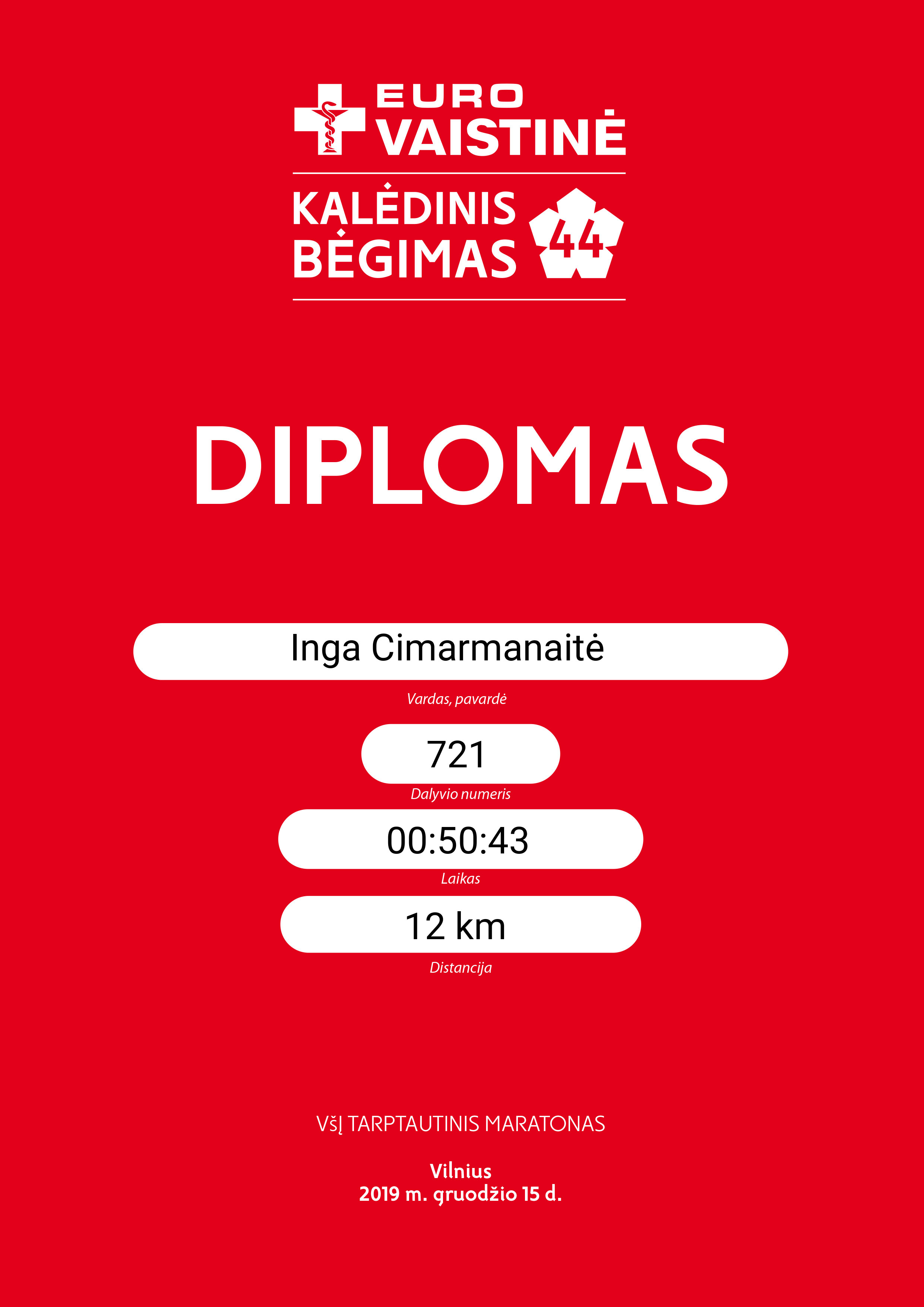| 34 | Inga Cimarmanaitė | Million steps | 721 | Lithuania | 12 km | 00:50:43 | Diplomas |