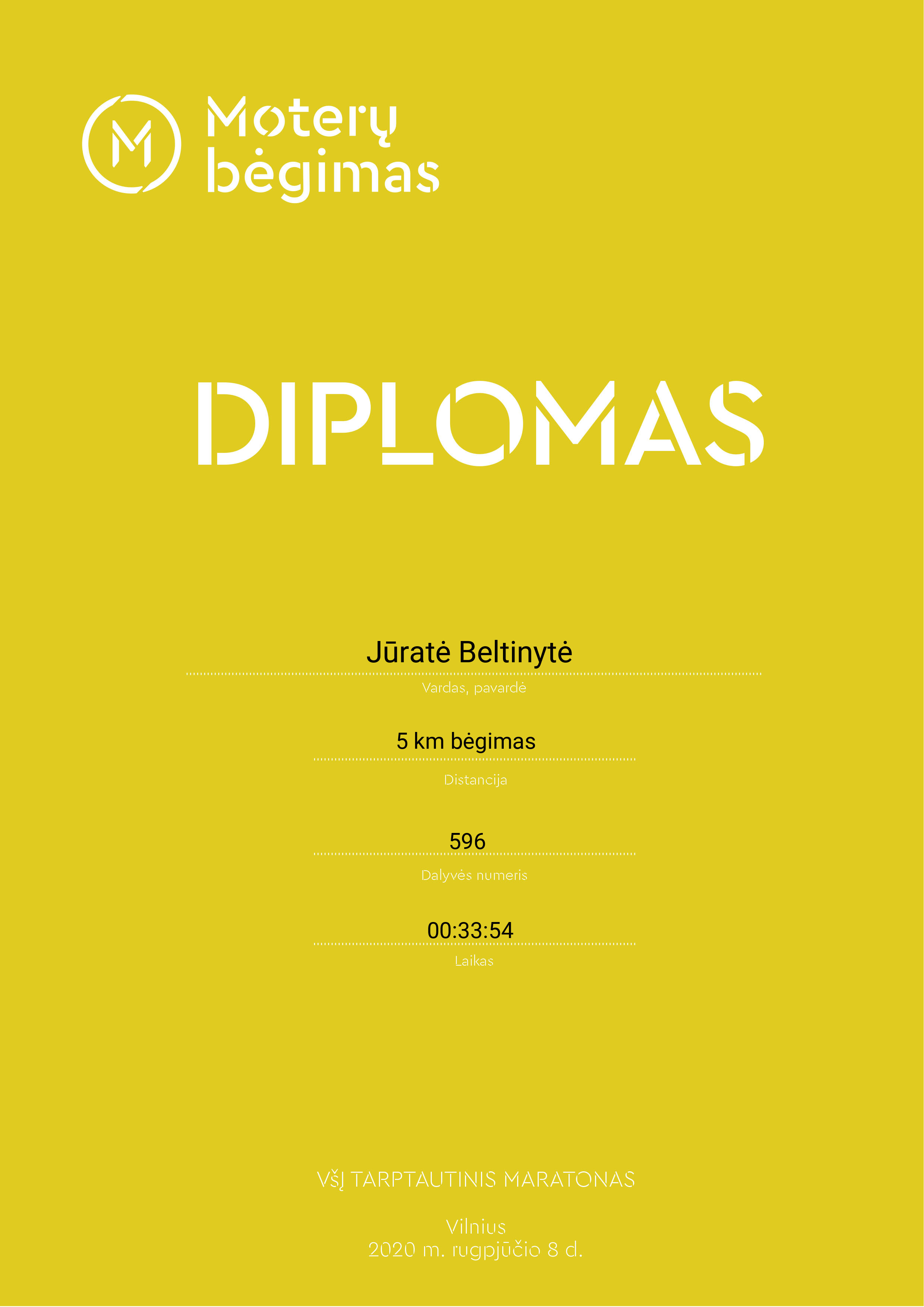 | 366 | Sandra Lipnevič | 159 | Lithuania | 5 km bėgimas | 00:33:55 | Diplomas | |
