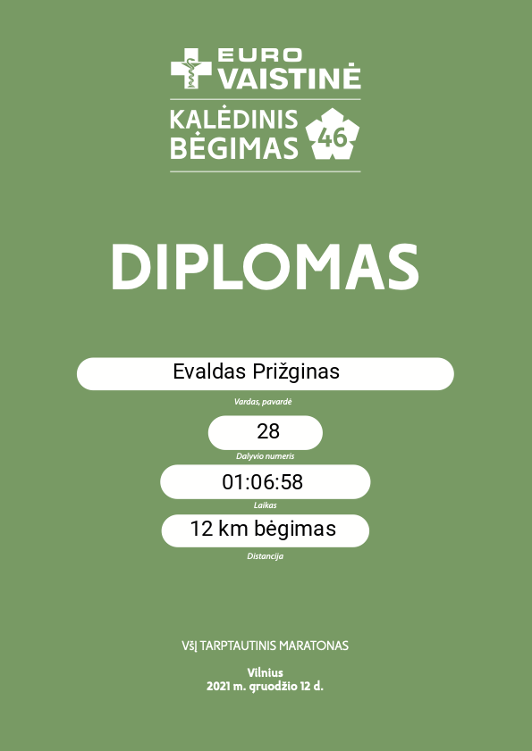 | 231 | Saulius Smirnovas | F.O.C.U.S. running | 44 | Lithuania | 12 km bėgimas | 01:05:16 | Diplomas |