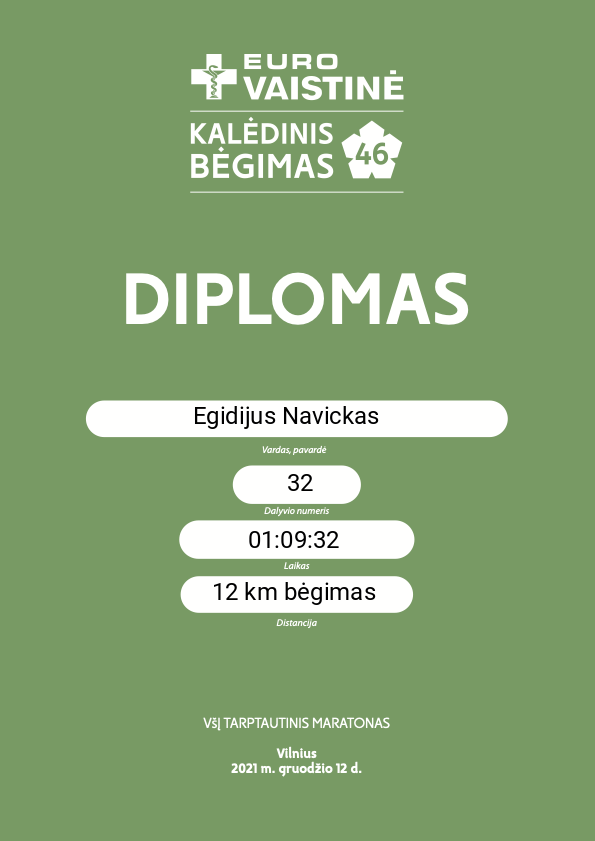 | 325 | Egidijus Navickas | Šviesos kariai | 32 | Lithuania | 12 km bėgimas | 01:09:47 | Diplomas |