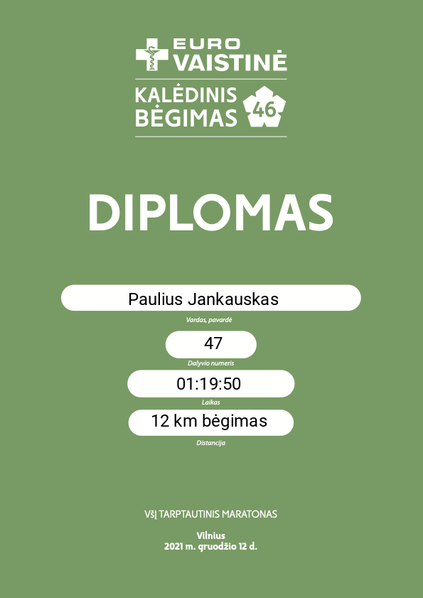 | 428 | Paulius Jankauskas | AUMIPA | 47 | Lithuania | 12 km bėgimas | 01:20:10 | Diplomas |
