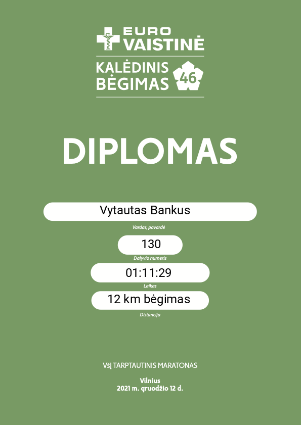 | 171 | Petras Šeika | Love Streams Running | 157 | Lithuania | 12 km bėgimas | 01:01:58 | Diplomas |