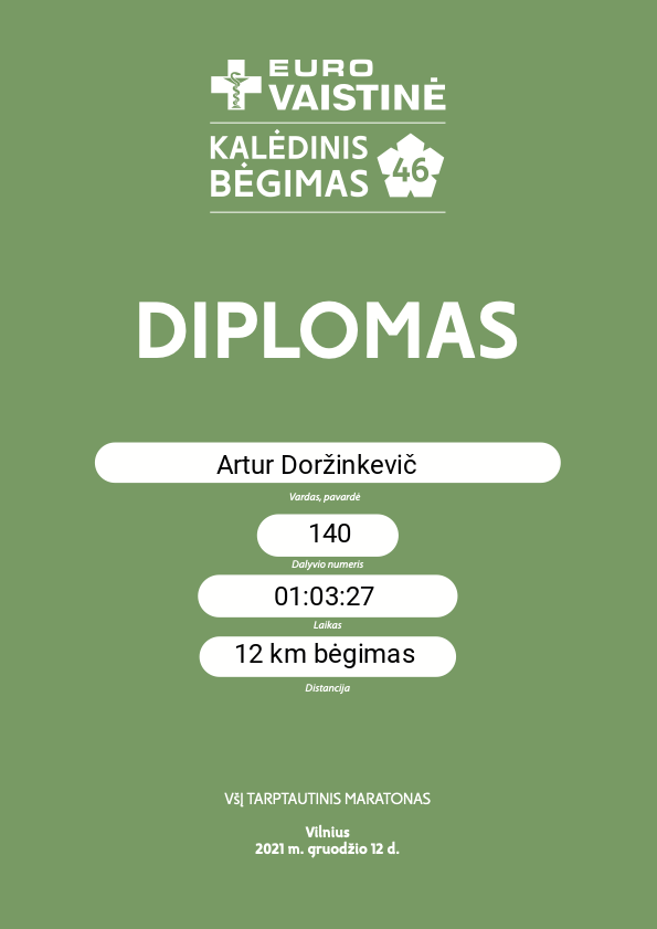 | 167 | ALEKSANDR BARANOV | B.K.JonasMaratonas | 135 | Lithuania | 12 km bėgimas | 01:01:49 | Diplomas |