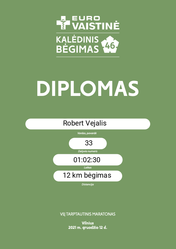 | 182 | Robert Vejalis | 33 | Lithuania | 12 km bėgimas | 01:02:37 | Diplomas | |