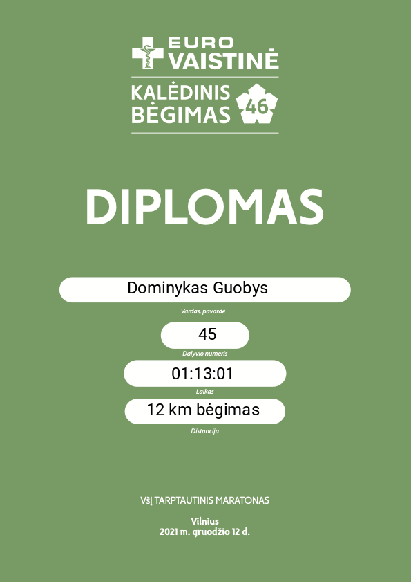 | 396 | Dominykas Guobys | 45 | Lithuania | 12 km bėgimas | 01:13:42 | Diplomas | |