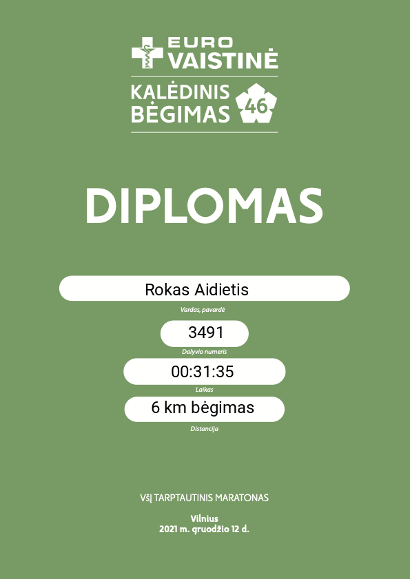 | 89 | Rokas Aidietis | F.O.C.U.S. running | 3491 | Lithuania | 6 km bėgimas | 00:31:58 | Diplomas |