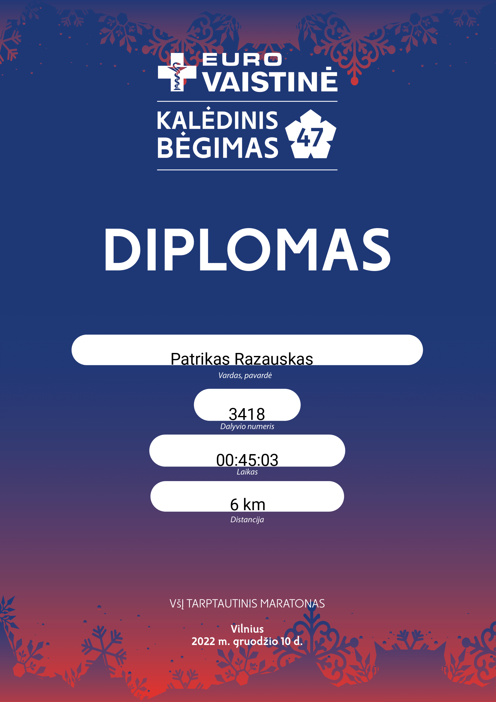 | 601 | Patrikas Razauskas | Media Map | 3418 | Lithuania | 6 km | 00:45:03 | Diplomas |