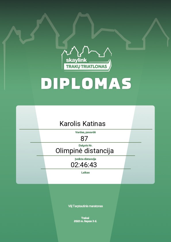 | 98 | Vytautas Jakštys | Runglorious Bastards | 79 | Lithuania | Olimpinė distancija | 02:48:33 | Diplomas |