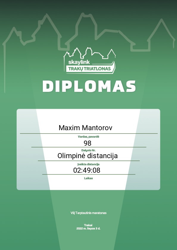 | 103 | Maxim Mantorov | Meating Room Sport Team | 98 | Lithuania | Olimpinė distancija | 02:49:08 | Diplomas |