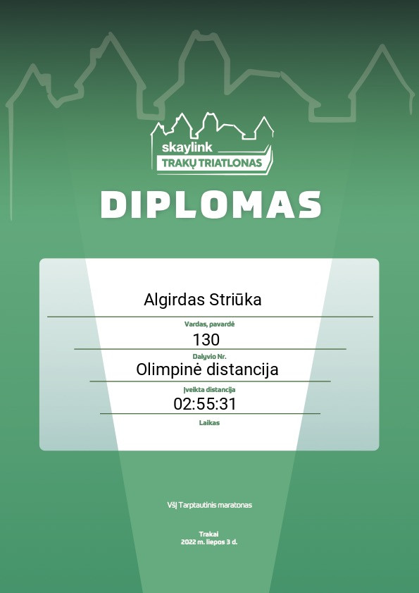 115 Algirdas Striūka IKIGAI 130 Lithuania Olimpinė distancija 02:55:31 00:42:46 00:01:29 01:21:13 00:12:00 00:12:06 00:12:08 00:01:44 00:48:18 00:12:05 Diplomas