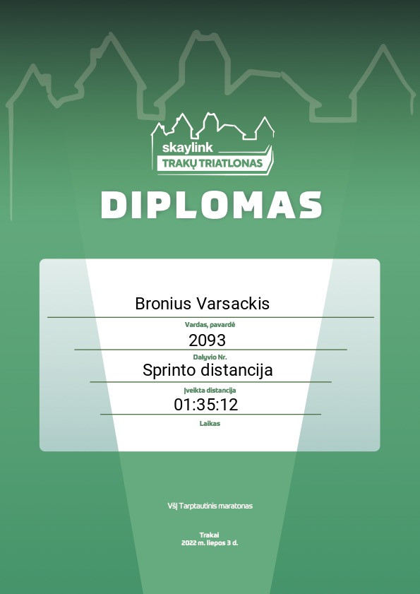 | 42 | Aurimas Bagdanavičius | Trakų Triatlono Būrelis | 2022 | Lithuania | Sprinto distancija | 01:22:56 | Diplomas |