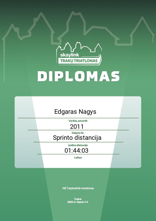 | 6 | Edgaras Krasavcevas | Trakų triatlono būrelis | 2107 | Lithuania | Sprinto distancija | 01:09:07 | Diplomas |