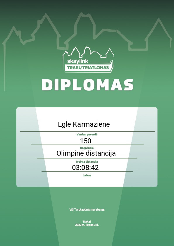 | 72 | Eglė Čiužaitė | TRItonas | 2064 | Lithuania | Sprinto distancija | 01:34:20 | Diplomas |