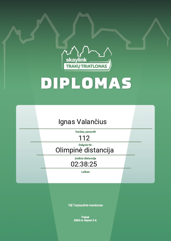 | 70 | Ignas Valančius | Runglorious Bastards | 112 | Lithuania | Olimpinė distancija | 02:38:25 | Diplomas |