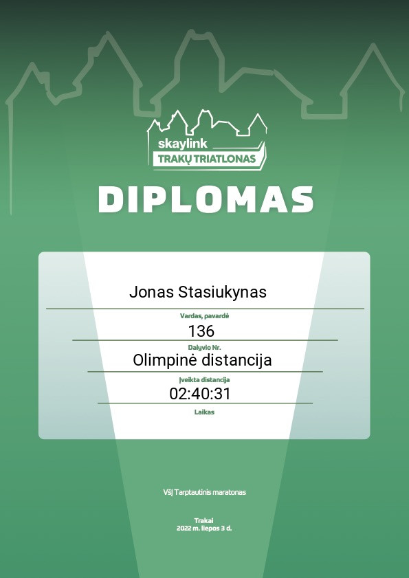 | 6 | Jurijus Krivičius | TRAKU TRIATLONO BURELIS | 5013 | Lithuania | Estafetė: Sprinto distancija | 01:19:01 | Diplomas |