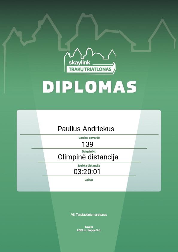 | 141 | Paulius Andriekus | HighPeaks Lietuva | 139 | Lithuania | Olimpinė distancija | 03:20:01 | Diplomas |
