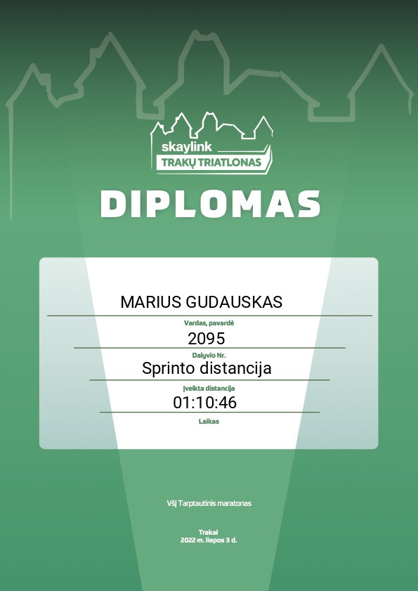 | 9 | MARIUS GUDAUSKAS | Parisian mechanics | 2095 | Lithuania | Sprinto distancija | 01:10:46 | Diplomas |