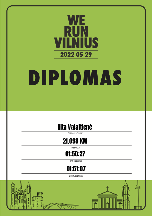 | 282 | Rita Valaitienė | Vilniaus bėgimo klubas | 10265 | Lithuania | 21,098 KM | 01:51:07 | Diplomas |