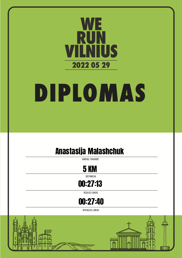 | 326 | Anastasija Malashchuk | 30924 | Lithuania | 5 KM | 00:27:40 | Diplomas |