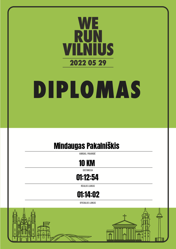 | 84 | Mantas Sidabras | 20139 | Lithuania | 10 KM | 00:43:56 | Diplomas | |