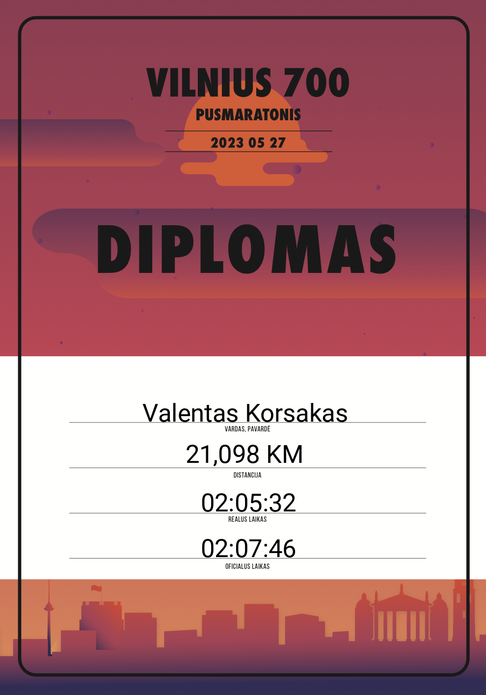 | 669 | Valentas Korsakas | Džiaugsmas | 10148 | Lithuania | 21,098 KM | 02:07:46 | Diplomas |