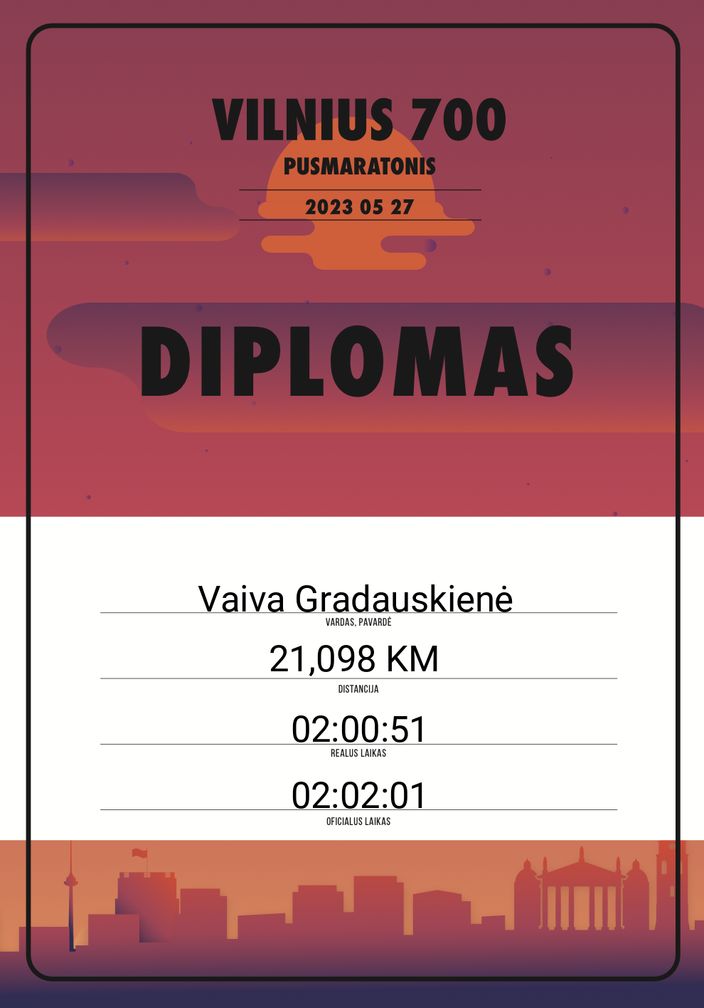 | 824 | Vaida Kažukauskienė | VIP | 10217 | Lithuania | 21,098 KM | 02:23:27 | Diplomas |