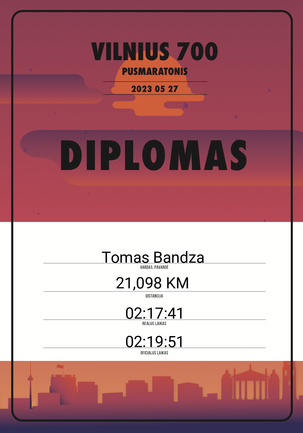 | 796 | Tomas Bandza | 10211 | Lithuania | 21,098 KM | 02:19:51 | Diplomas | |