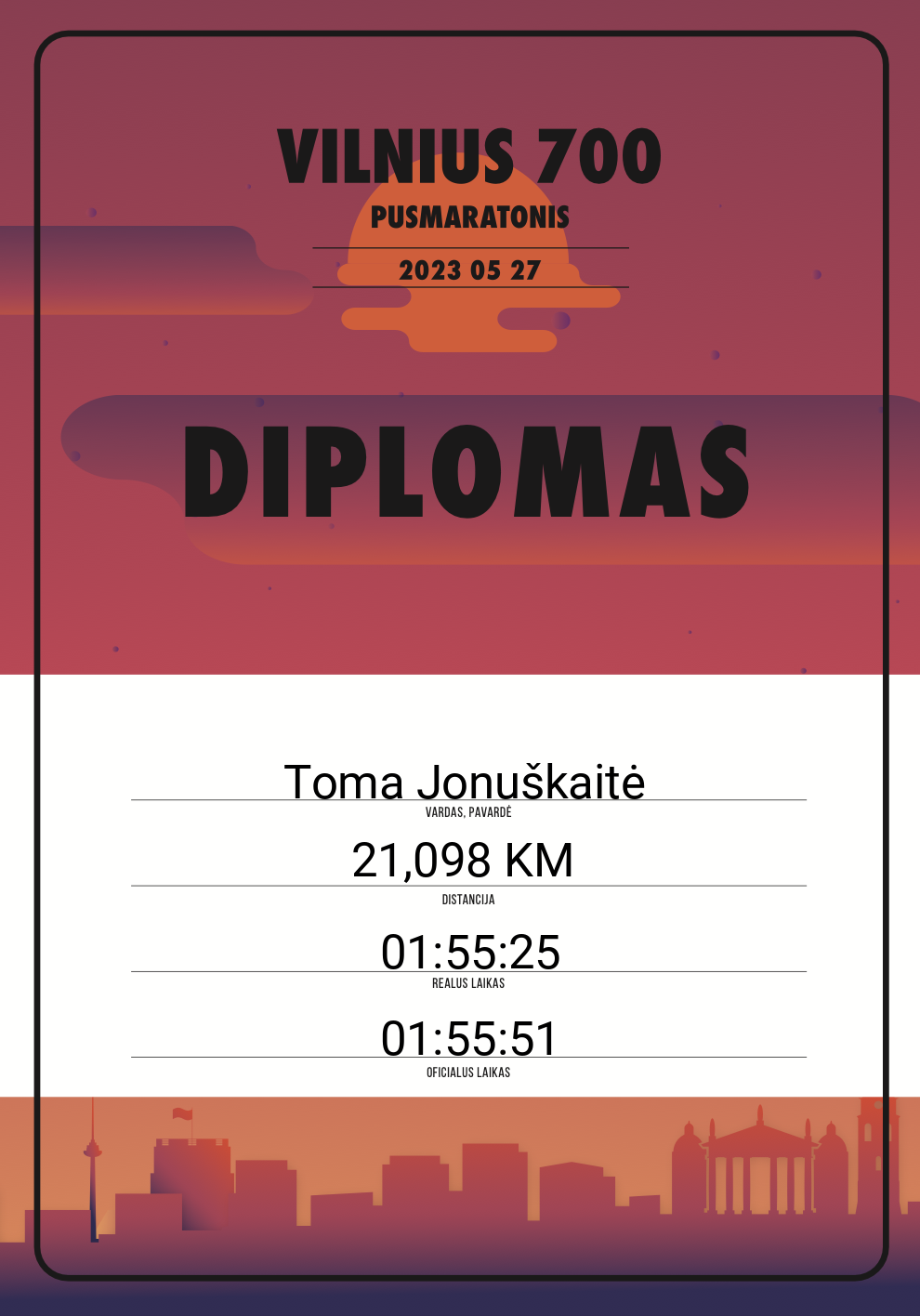 | 487 | Toma Jonuškaitė | Love Streams Running | 10223 | Lithuania | 21,098 KM | 01:55:51 | Diplomas |