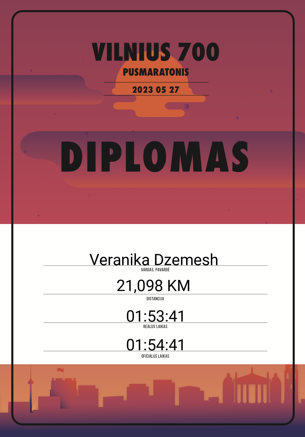 | 461 | Veranika Dzemesh | Mikkeller Running Club Minsk | 10229 | Lithuania | 21,098 KM | 01:54:41 | Diplomas |