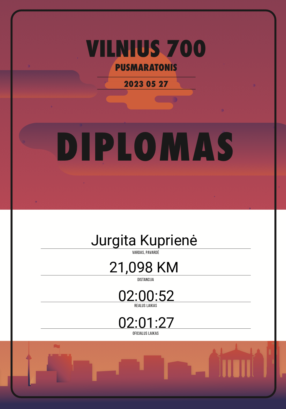| 585 | Jurgita Kuprienė | Litgird | 10531 | Lithuania | 21,098 KM | 02:01:27 | Diplomas |