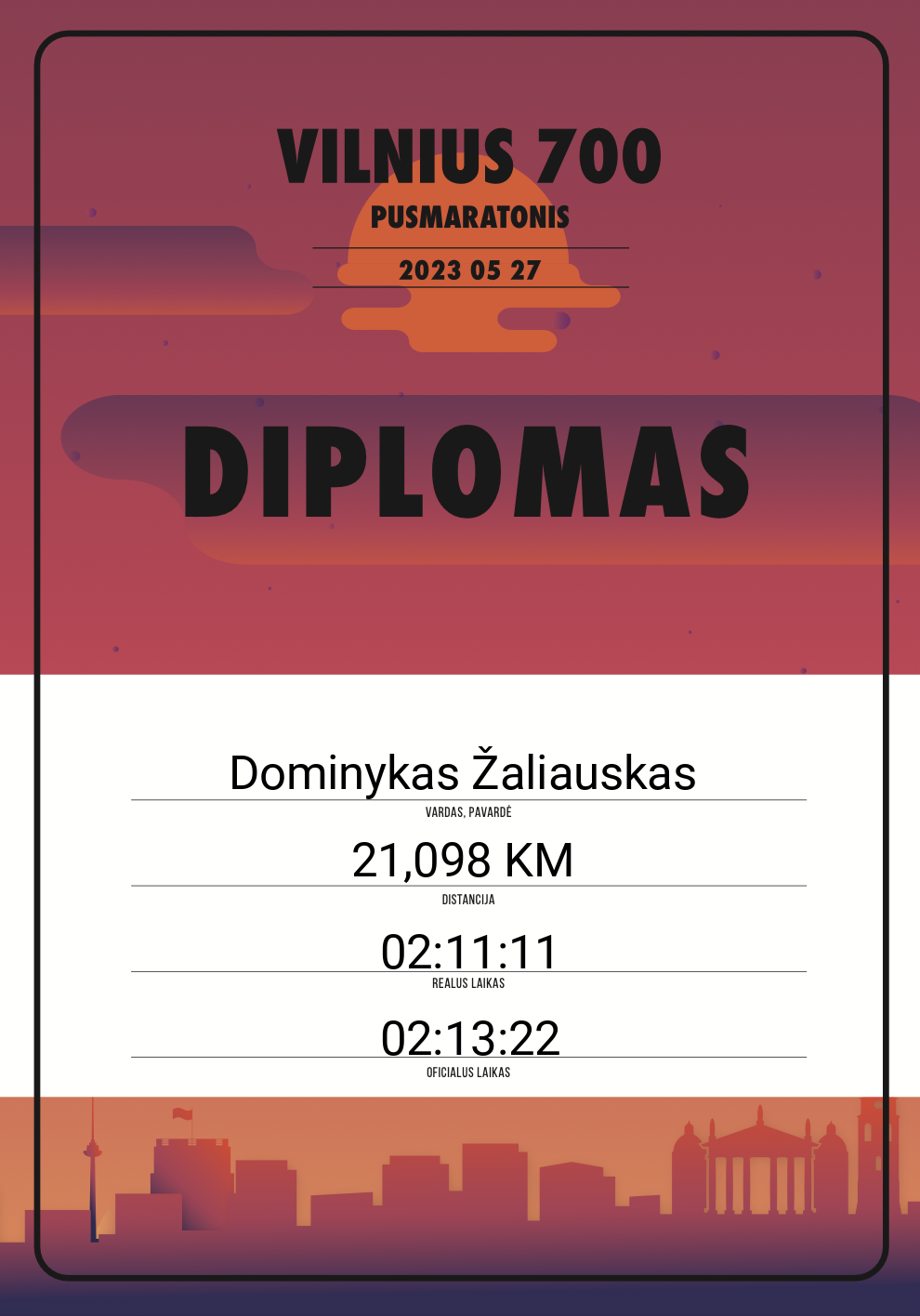 | 736 | Dominykas Žaliauskas | - | 11089 | Lithuania | 21,098 KM | 02:13:22 | Diplomas |