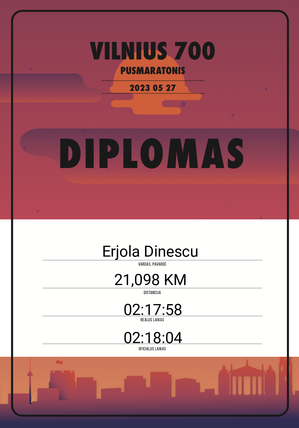 | 686 | Eimantas Vaičekonis | 10839 | Lithuania | 21,098 KM | 02:08:52 | Diplomas | |