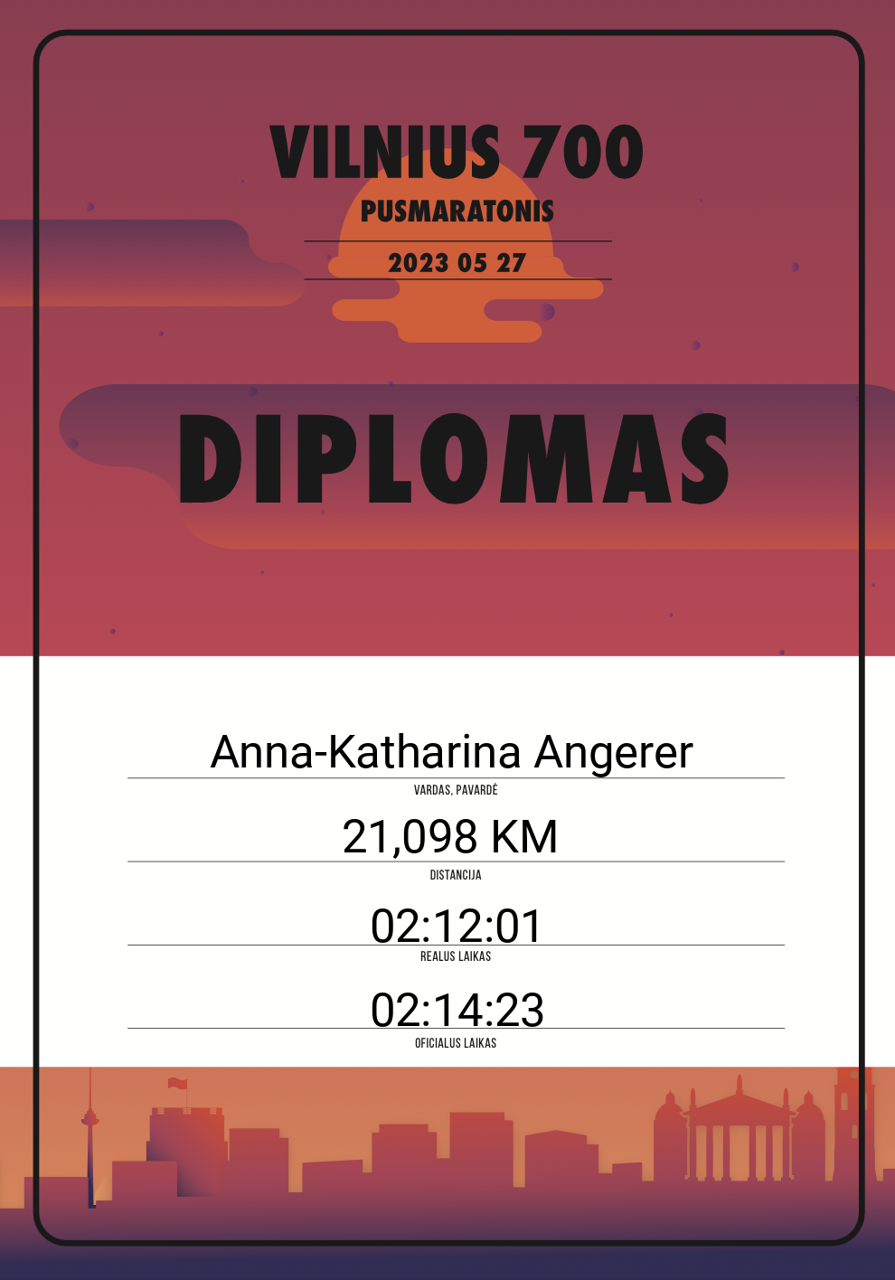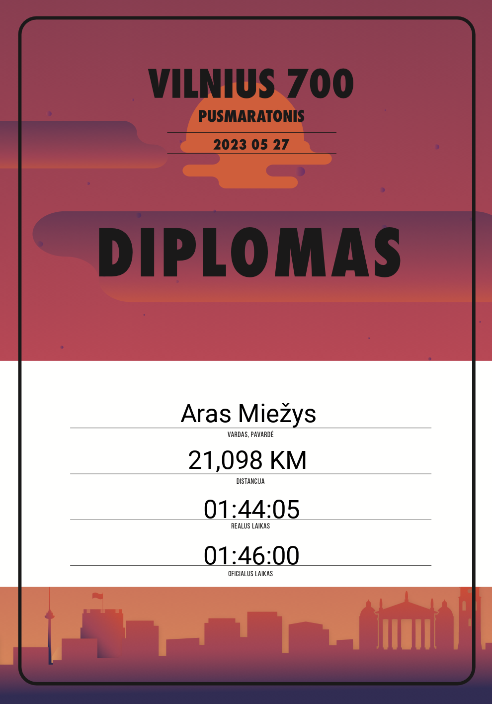 | 264 | Aras Miežys | 10876 | Lithuania | 21,098 KM | 01:46:00 | Diplomas |
