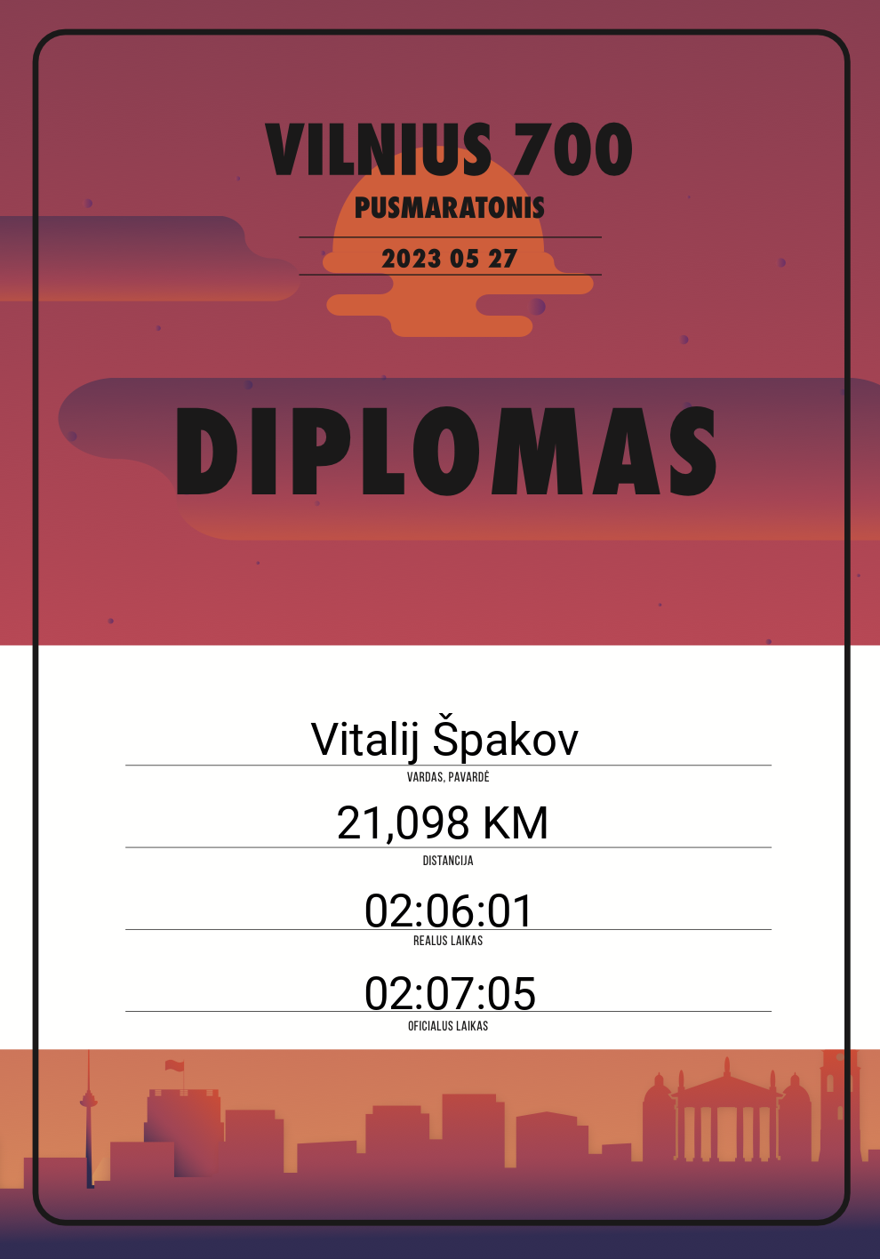 | 657 | Vitalii Gievskii | EPAM Running Club | 11027 | Lithuania | 21,098 KM | 02:07:16 | Diplomas |