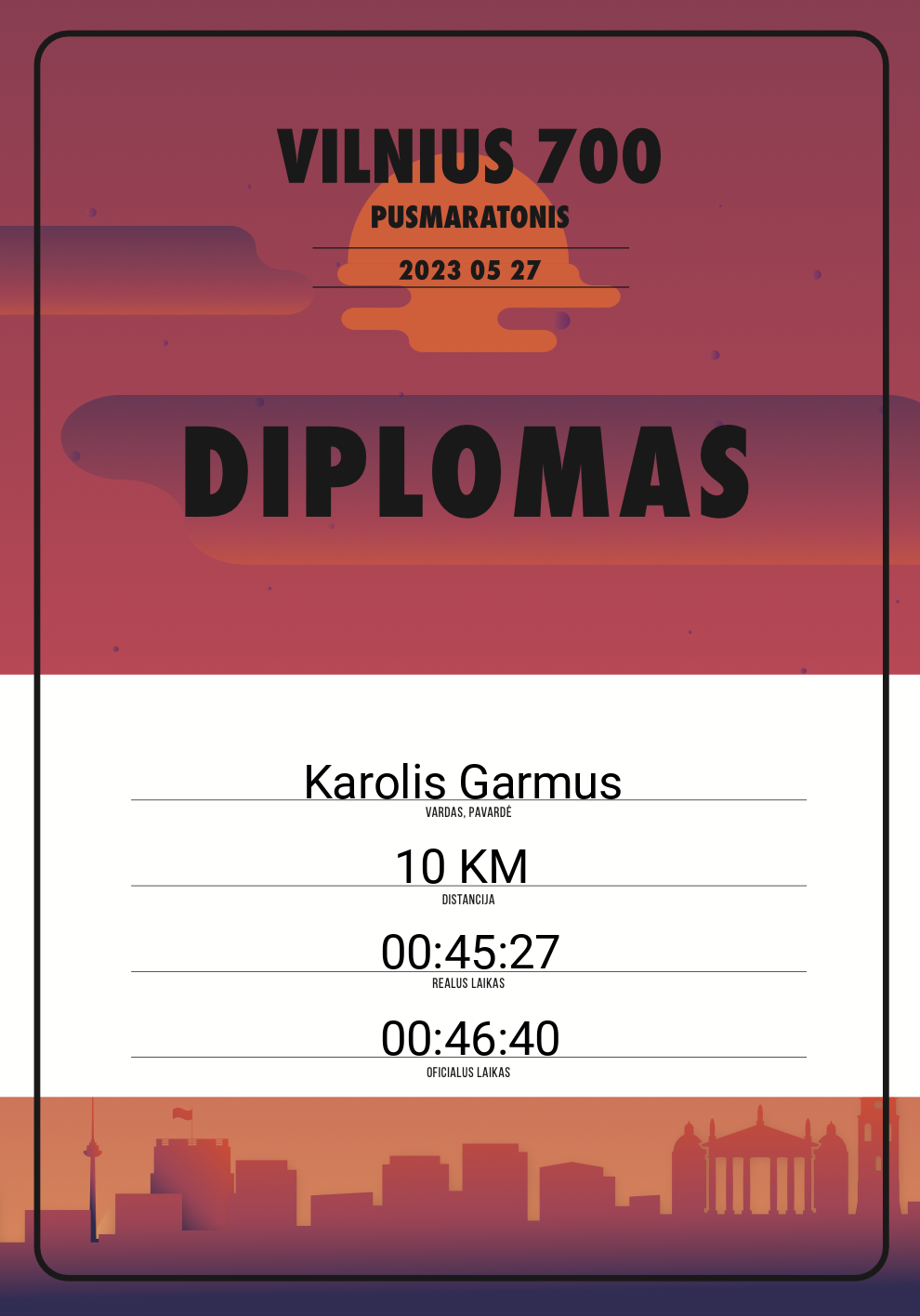 | 85 | Karolis Garmus | Swedbank | 20606 | Lithuania | 10 KM | 00:46:40 | Diplomas |
