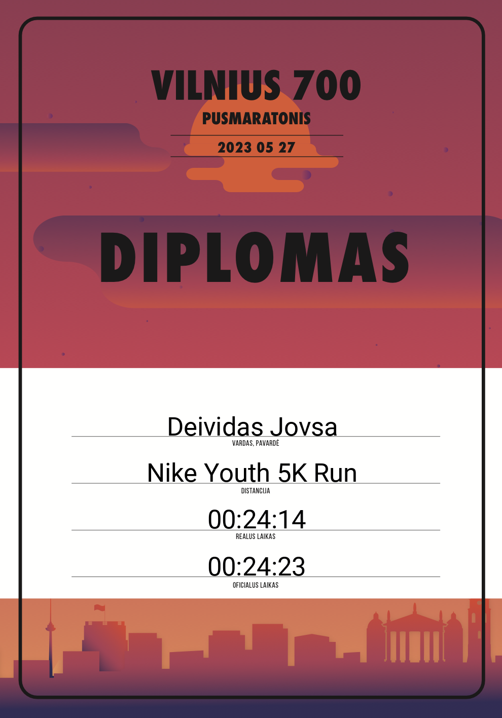 | 84 | Deividas Jovsa | Sostinės sporto centras | 30449 | Lithuania | Nike Youth 5K Run | 00:24:23 | Diplomas |