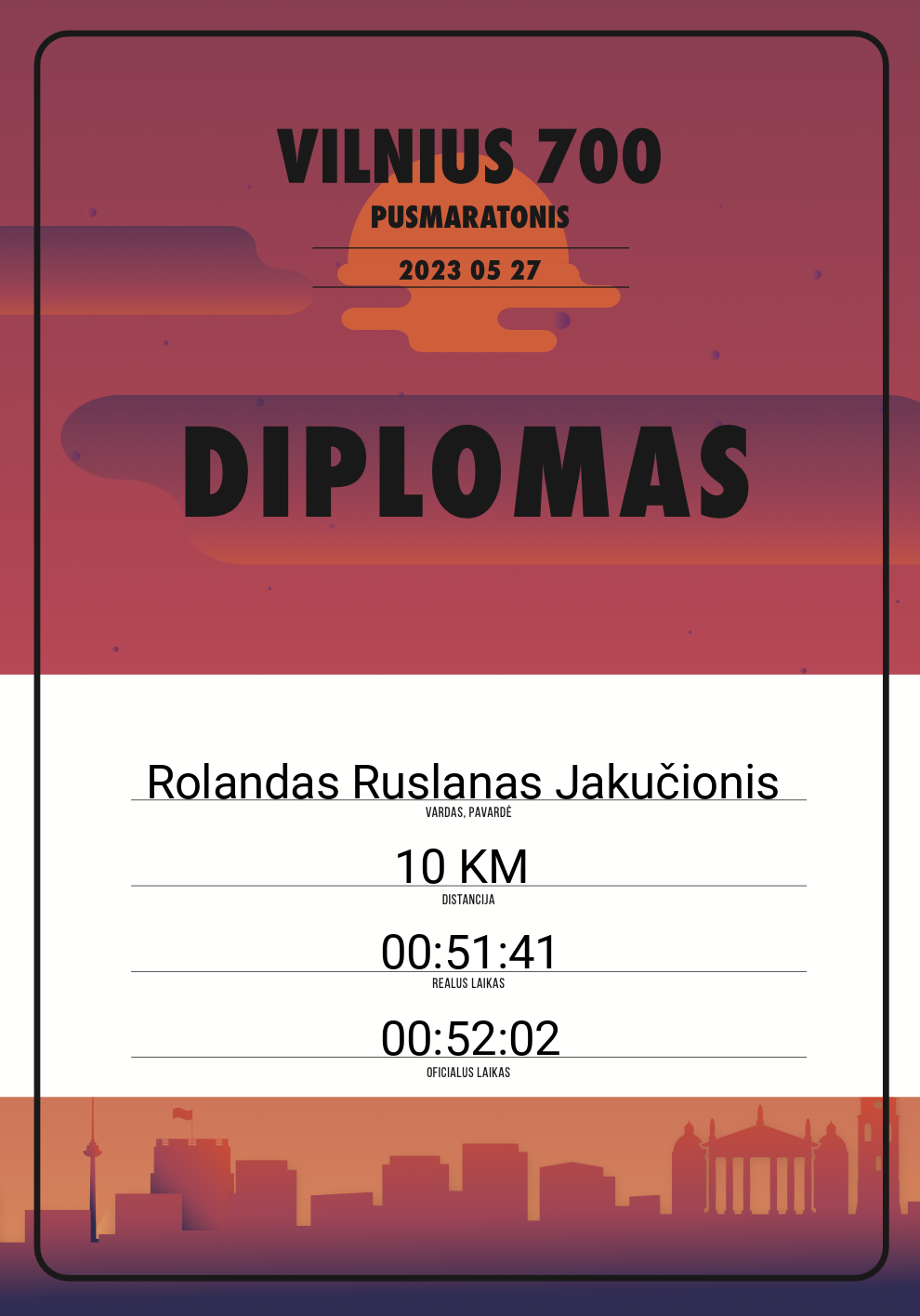 217 Rolandas Ruslanas Jakučionis LPT 20236 Lithuania 10 KM 00:52:02 00:51:41 00:26:24 Diplomas