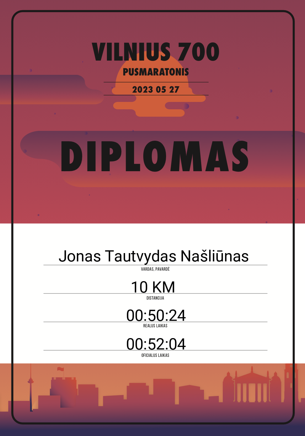 216 Karolis Steikūnas TransUnion 20171 Lithuania 10 KM 00:52:01 00:50:14 00:27:54 Diplomas