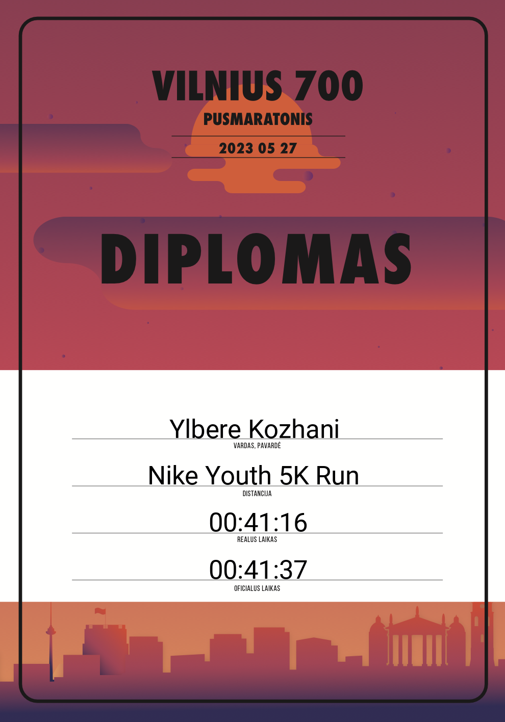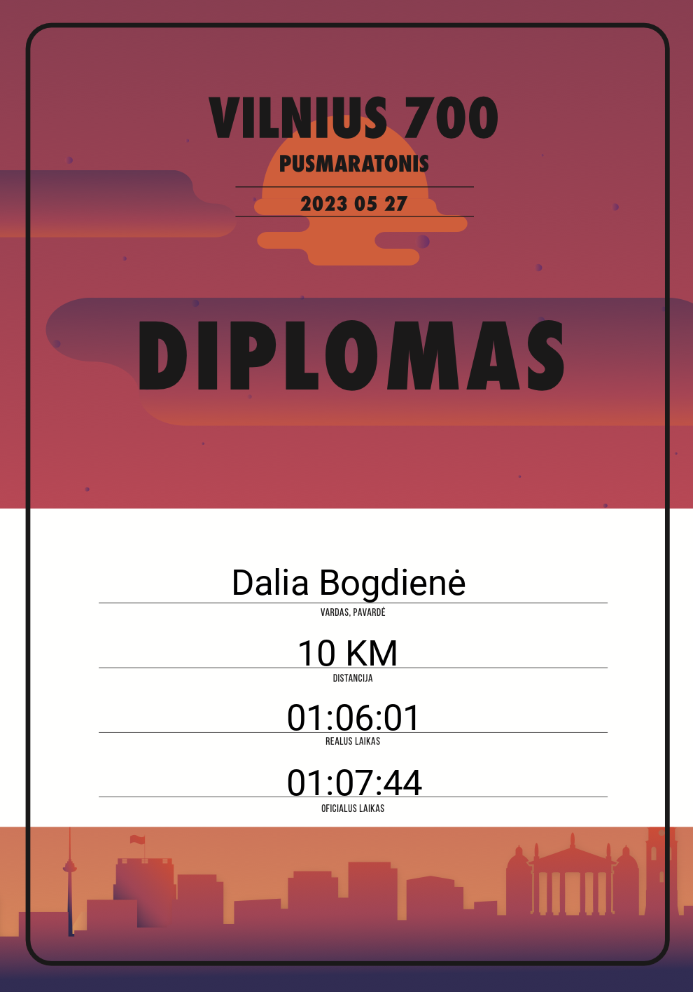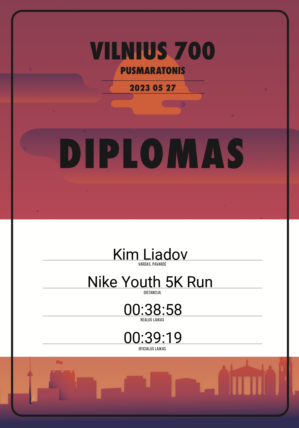 | 704 | Justas Danaitis | 20753 | Afghanistan | 10 KM | 01:05:44 | Diplomas | |