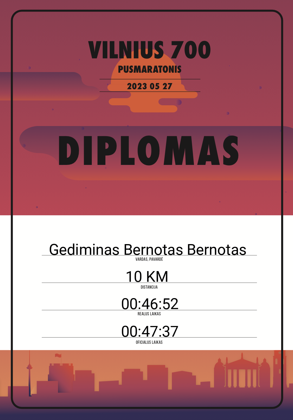 | 110 | Gediminas Bernotas Bernotas | 20794 | Afghanistan | 10 KM | 00:47:37 | Diplomas |