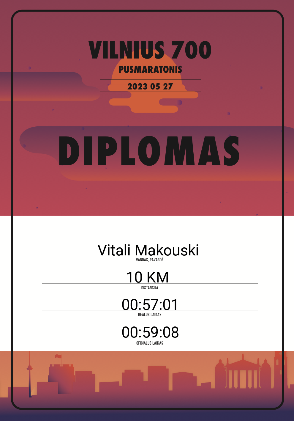 | 793 | Rokas Saulevičius | 20073 | Lithuania | 10 KM | 01:09:50 | Diplomas | |