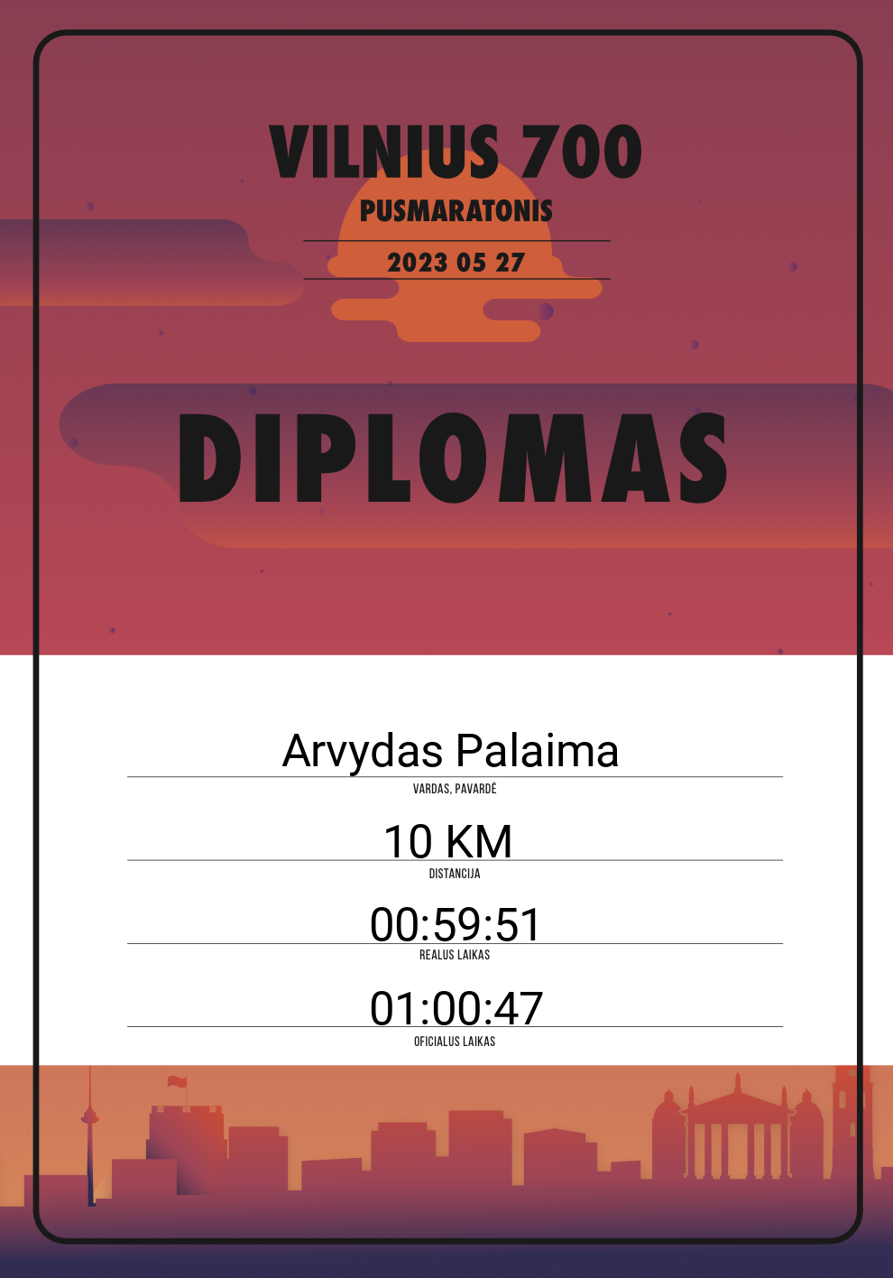 | 625 | Audrius Gadisauskas | 10466 | Lithuania | 21,098 KM | 02:03:56 | Diplomas |