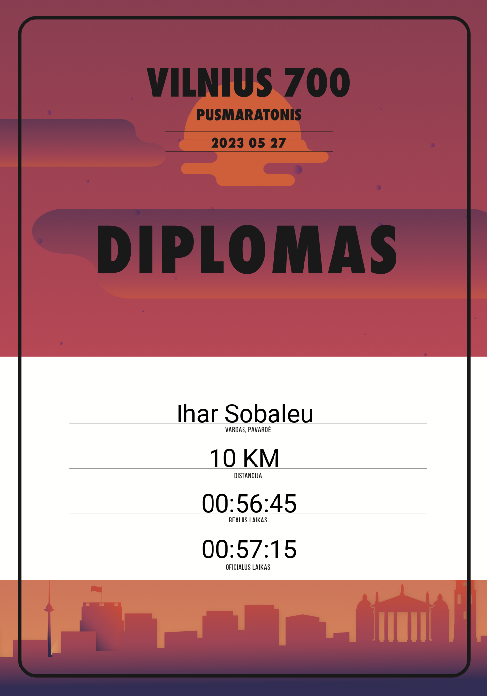 | 410 | Ihar Sobaleu | 21031 | Lithuania | 10 KM | 00:57:15 | Diplomas | |
