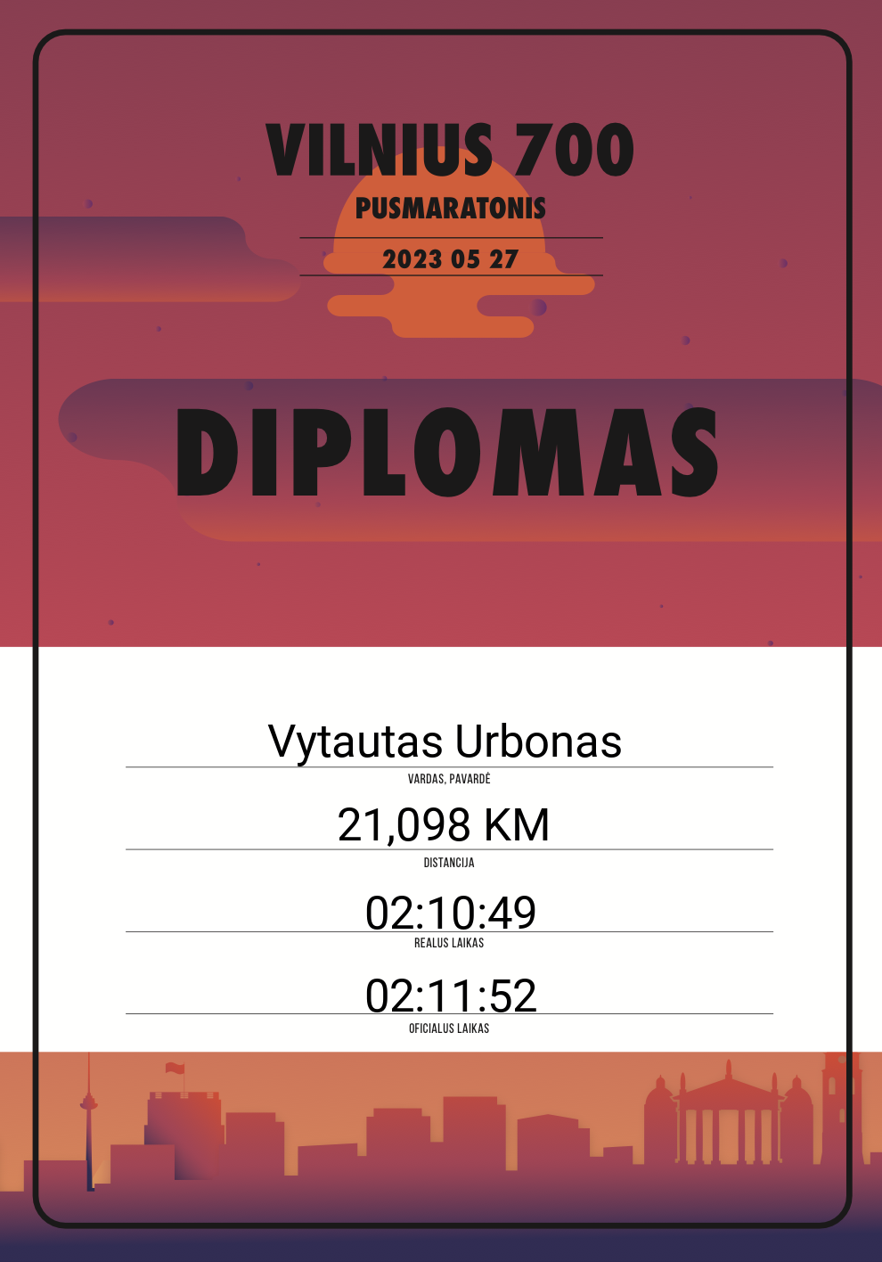 | 717 | Vytautas Urbonas | Swedbank | 10135 | Lithuania | 21,098 KM | 02:11:52 | Diplomas |
