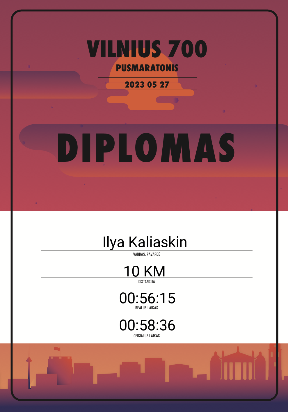 | 484 | Kirill Novoskoltsev | 10473 | Lithuania | 21,098 KM | 01:55:41 | Diplomas | |