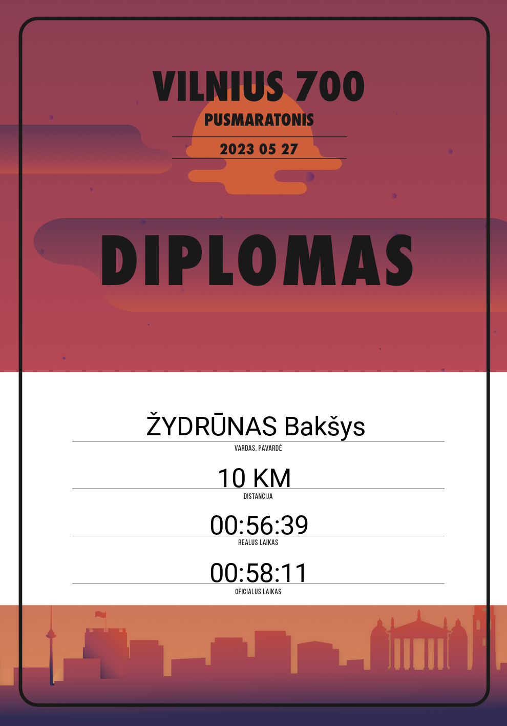 | 453 | ŽYDRŪNAS Bakšys | 20229 | Lithuania | 10 KM | 00:58:11 | Diplomas |