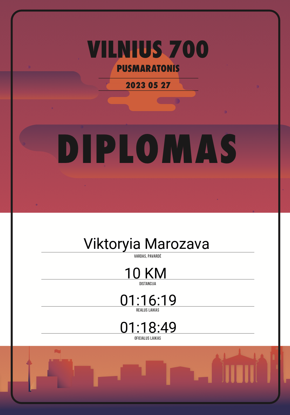 | 866 | Viktoryia Marozava | 20233 | Lithuania | 10 KM | 01:18:49 | Diplomas | |